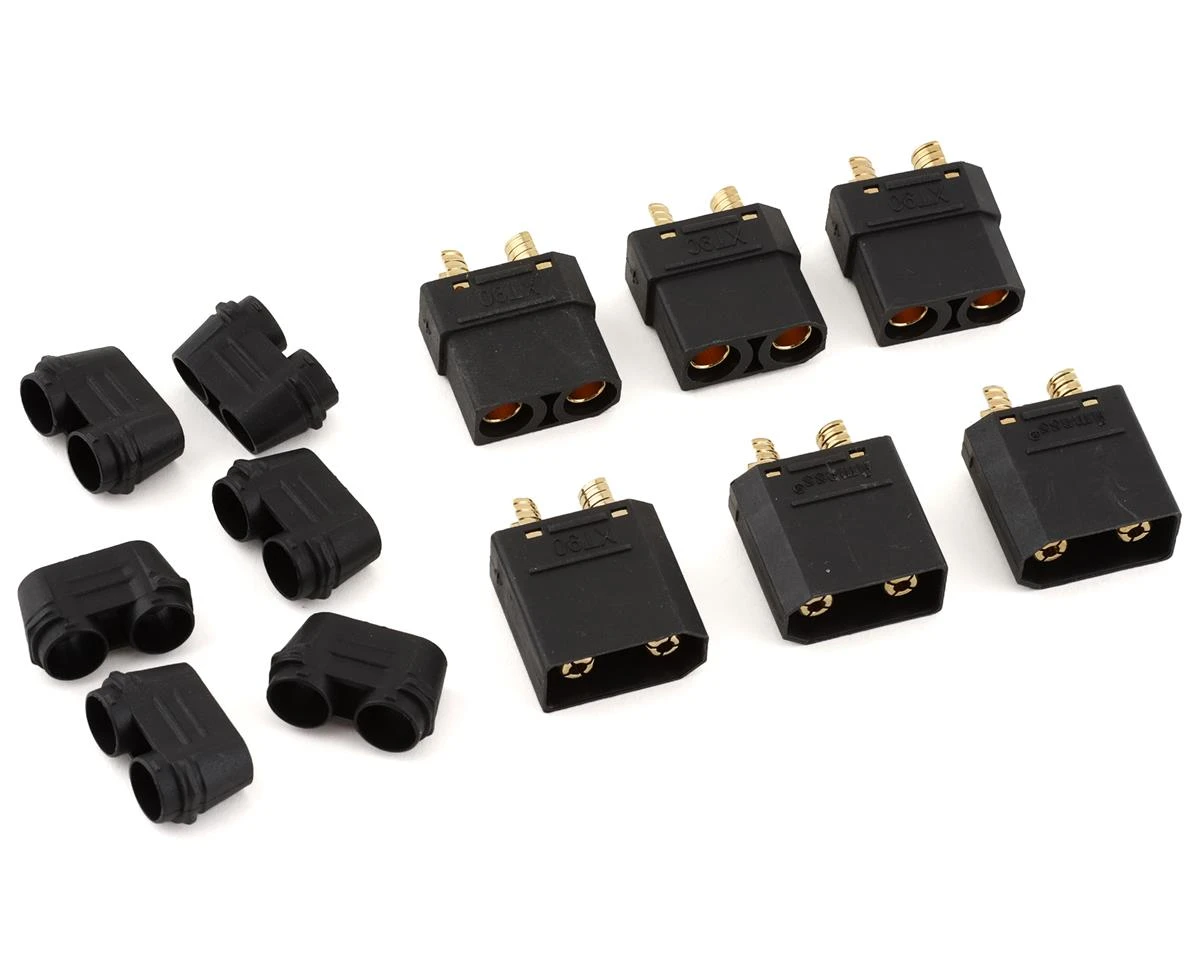 DragRace Concepts XT90 Connector Set. Package includes three male and three female connectors, with included wire covers to eliminate the need for heat shrink.Â