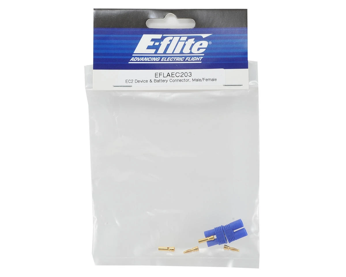 E-flite’s high-quality EC2 connectors should be a staple for every workbench. EC2 (E-flite Connector 2mm) connectors, leads with connectors, and accessories are perfect for electric power applications and work with any battery, charger, ESC, Power Meter, etc. They are ideal for small electric airplanes that use our Park 180, Park 250, and Park 300 outrunner motors and 5- to 10-Amp brushless speed controls.