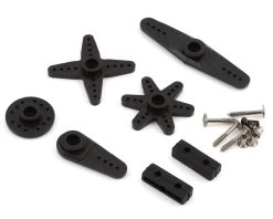 - Includes plastic 4 way, dual, and single arm servo horns and mounting hardware