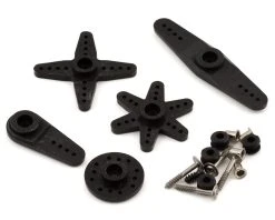 - Includes plastic star, 4 way, dual, single and round type servo horns and mounting hardware