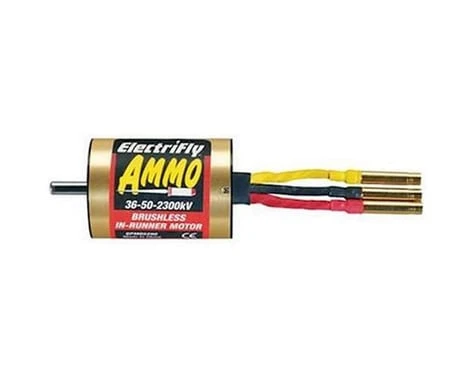 The Great Planes Ammo 36-50 In-Runner Brushless Motor offers an incredible power-to-weight advantage and almost twice the efficiency of Brushed motors. The Ammo line of brushless motors feature “Rare Earth” Neodymium magnets, gold plated connectors and double sealed bearings for long lasting high efficiency. Package includes one Ammo motor.