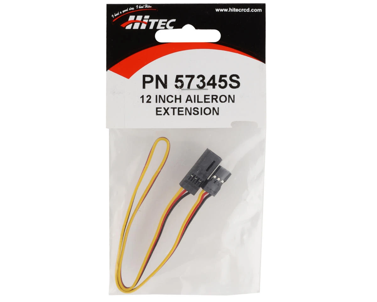 This is a Hitec 12″ Servo Extension with JR/RCD Connectors. This extension goes between the receiver and the servo to make the wirelonger. On one end of the wire is a male connector and on the other endof the wire is a female connector.