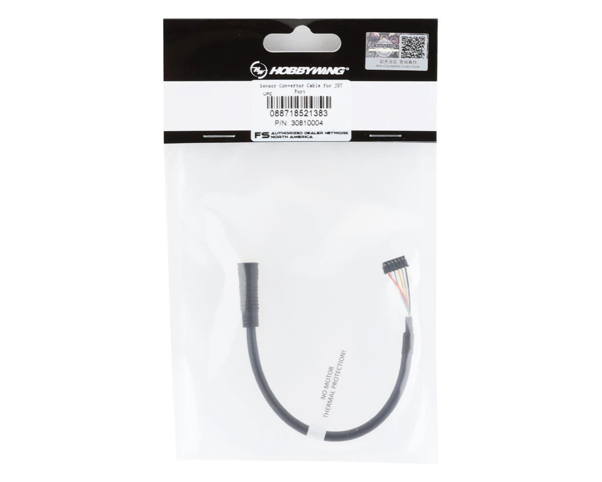 Hobbywing JST Port Convertor Cable. This is an optional part intended to convert the waterproof sensor cable used on the EZRUN MAX8 G2 and MAX4-HV ESC’s. This allows the use of a standard sensored brushless motor. Package includes one JST port converter cable.Â