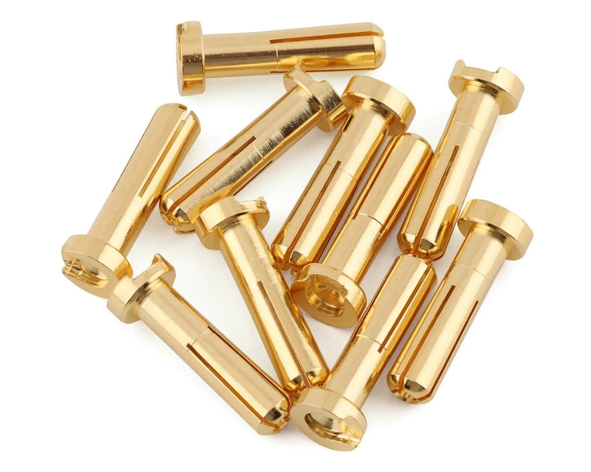 LPR 4mm Gold Works Team Bullet Connectors. These connectors are ideal for use with competition batteries that use a 4mm bullet. Package includes ten bullet connectors.