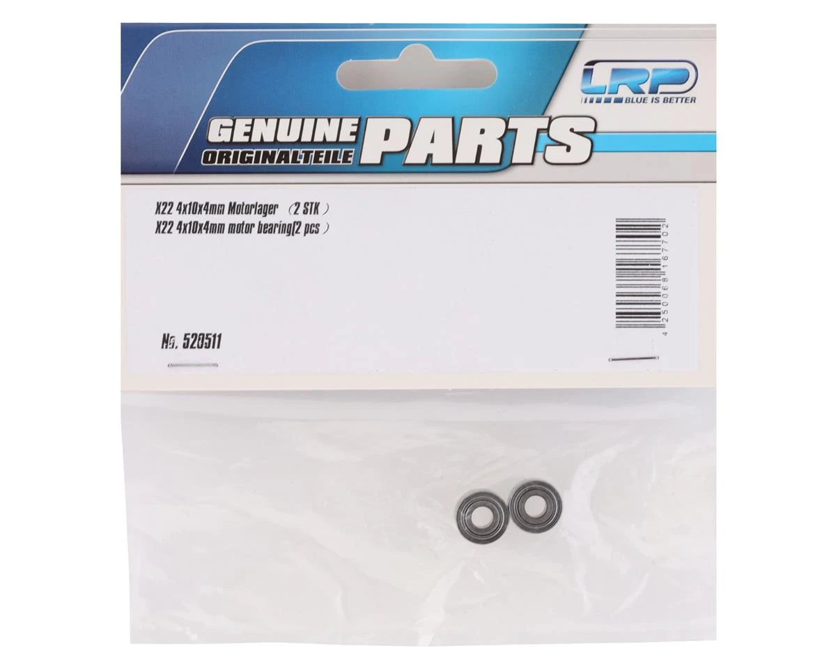 LRP 4x10x4mm X22 Motor Bearing. These replacement motor bearings are intended for the LRP X22 series motor. Package includes two bearings.