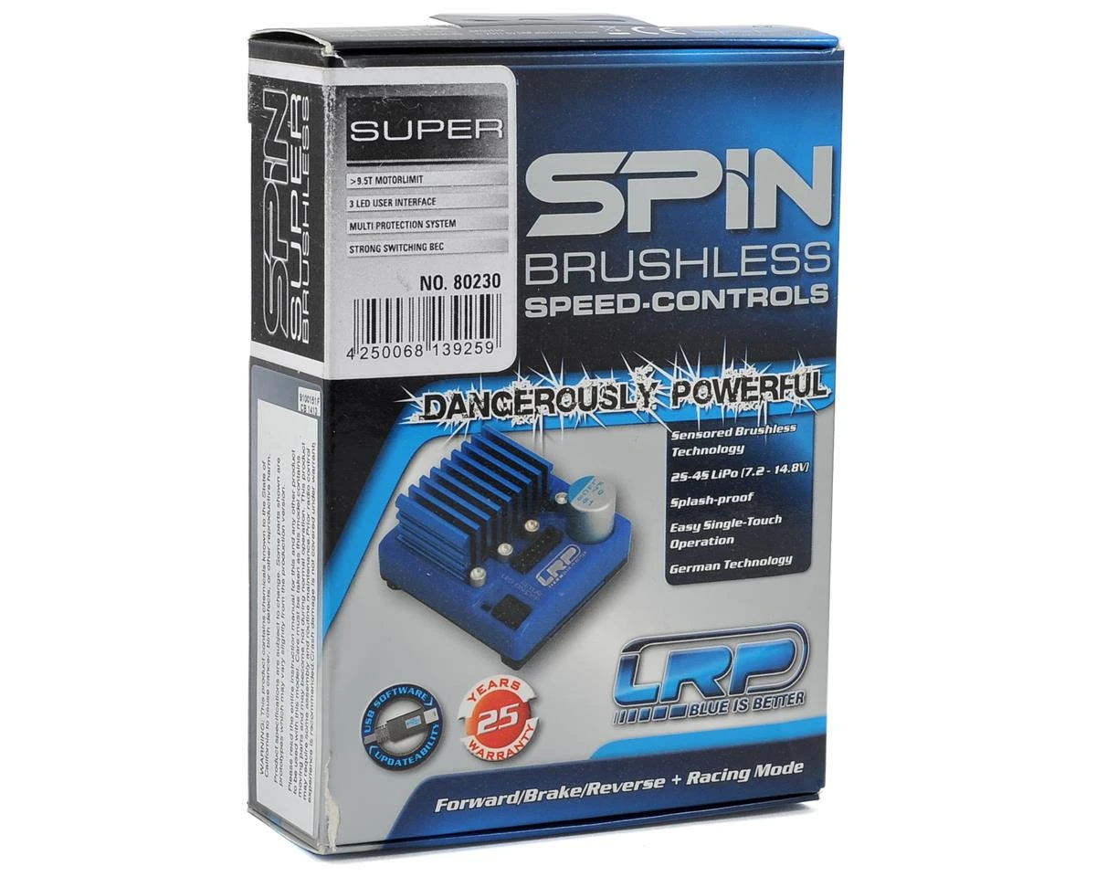 This is the LRP Spin Super Brushless ESC. The Spin Super is perfect for hobby and parking lot racers. It is a reliable and cost-effective sensored ESC, and is an excellent choice for a RTR upgrade. The Spin Super is great for 1/10 scale Touring Cars, Buggies, Truggies, Monster Trucks and 2wd Short Course trucks.