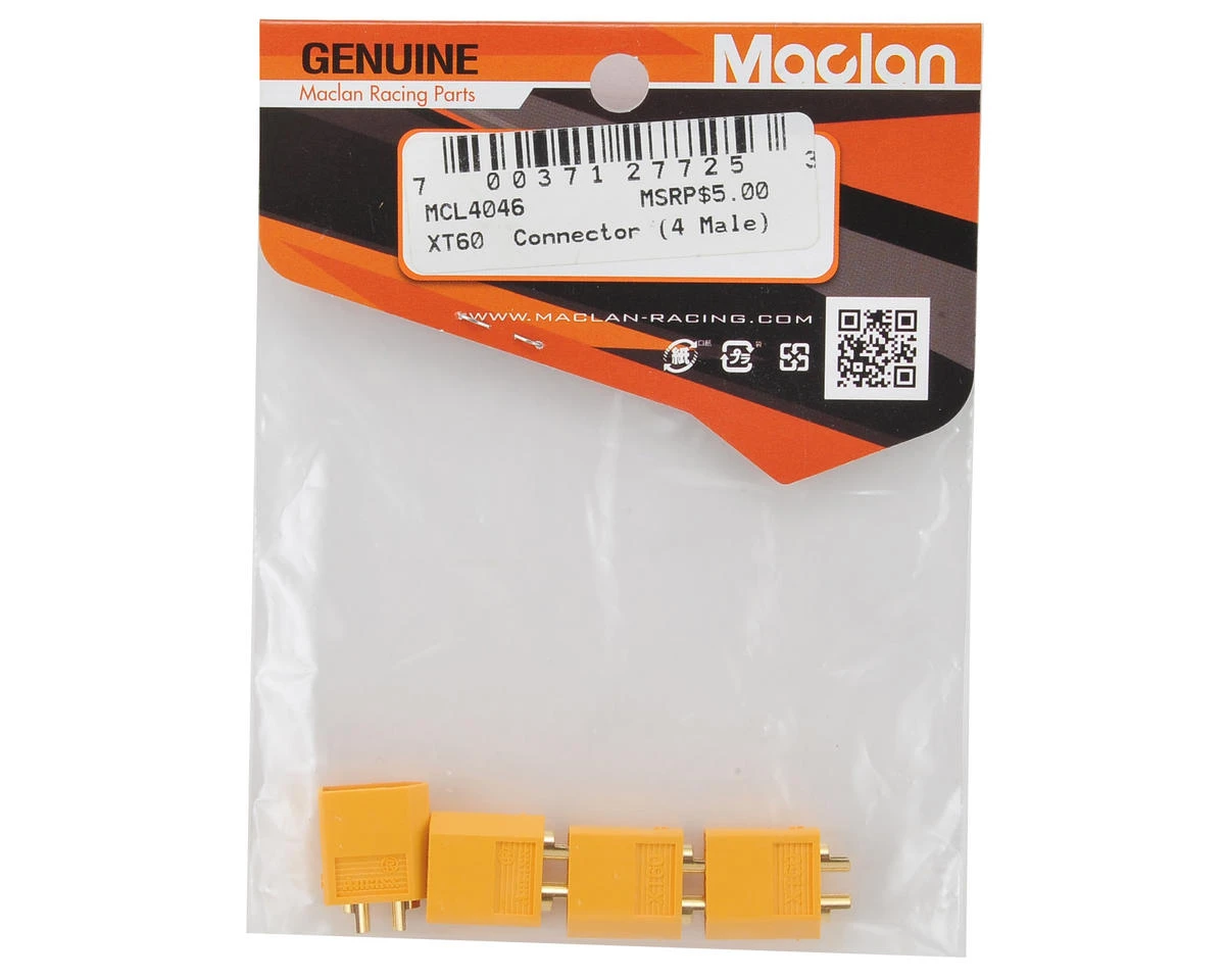 A package of four yellow XT60 connectors from Maclan.