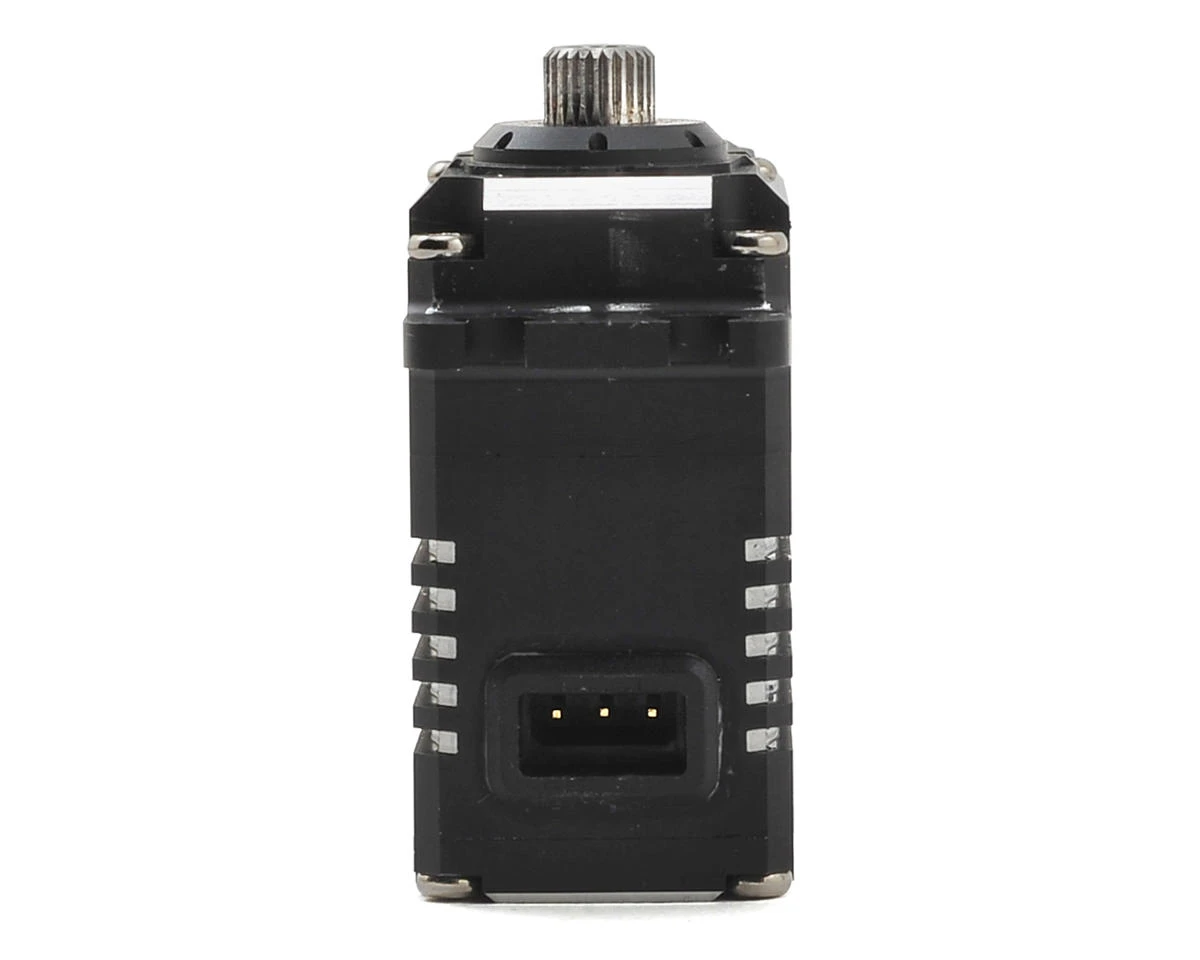 A black anodized aluminum case with aluminum and white accents give this servo a stealthy look that sets it apart from the rest. The aluminum upper case provides bomb proof durability and the heat sink center case offers efficient heat dissipation and helps to reduce weight. The lead wire is detachable, allowing you to easily custom tailor the servo lead to your application, and the package includes both 135mm and 285mm length servo leads. Plus, a full selection of servo arms and mounting hardware are included making installation easy.