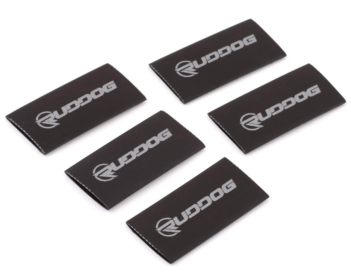 Ruddog 40x24mm Cable Management Shrink Wrap. These are great for use as a non permanent bundling option for charging cables, motor wires, and more. Package includes five lengths of 40mm long, 24mm wide heat shrink with Ruddog badging.