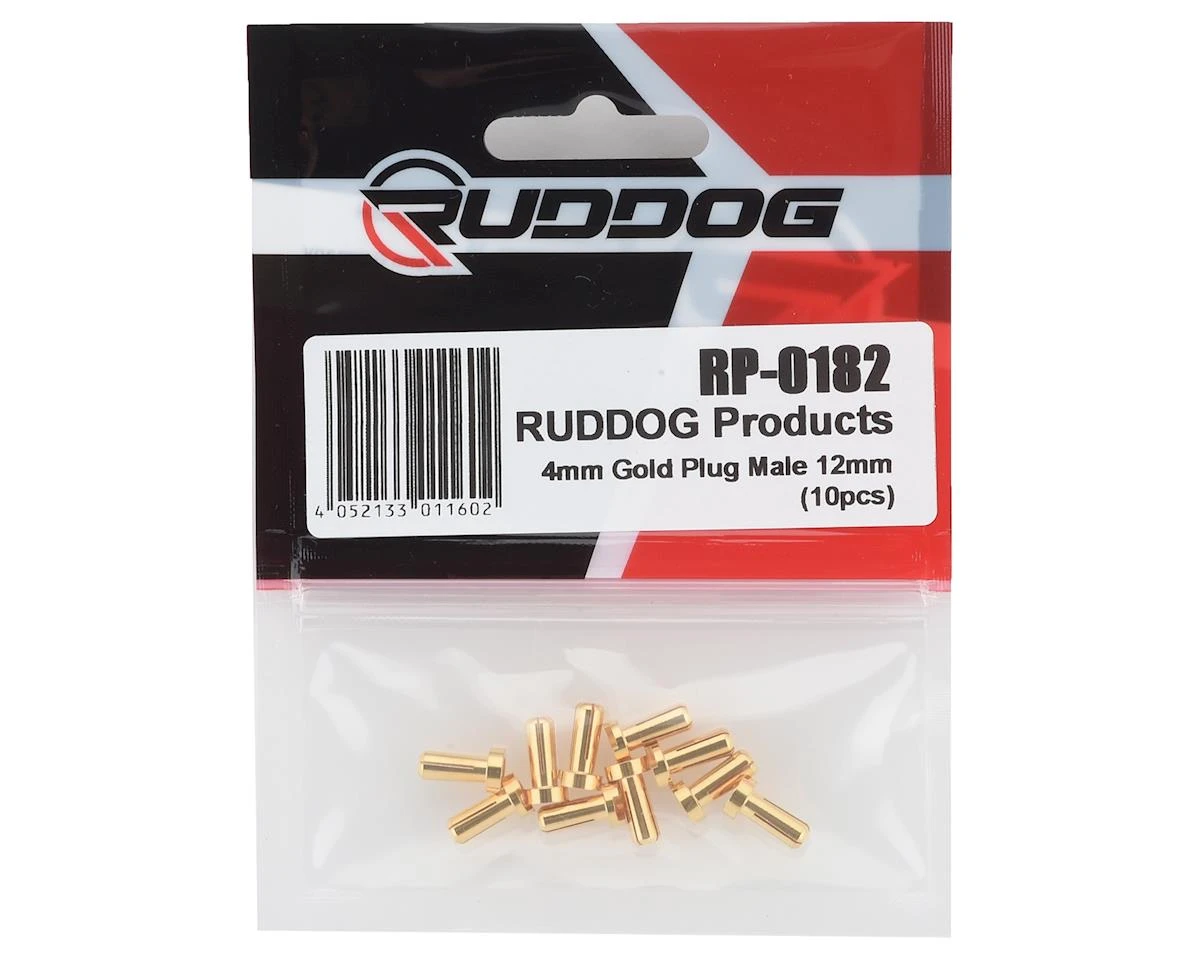This is a pack of ten Ruddog 4mm Gold Bullet Plugs. These male plugs are 4mm diameter and 12mm long.