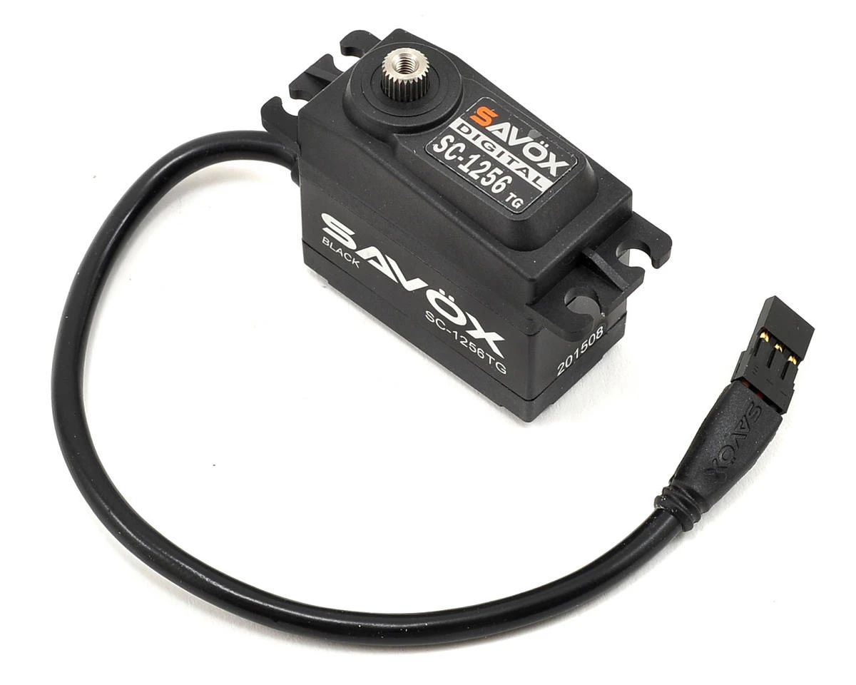 Savox’s SC-1256TG Black Edition Standard Digital “High Torque” Titanium Gear Servo features a sleek black aluminum center case with laser etched details, as well as a shorter 200mm long heavy duty wire. The SC-1256TG is ideal for steering applications in 1/8 scale buggies, monster trucks and rock crawlers.