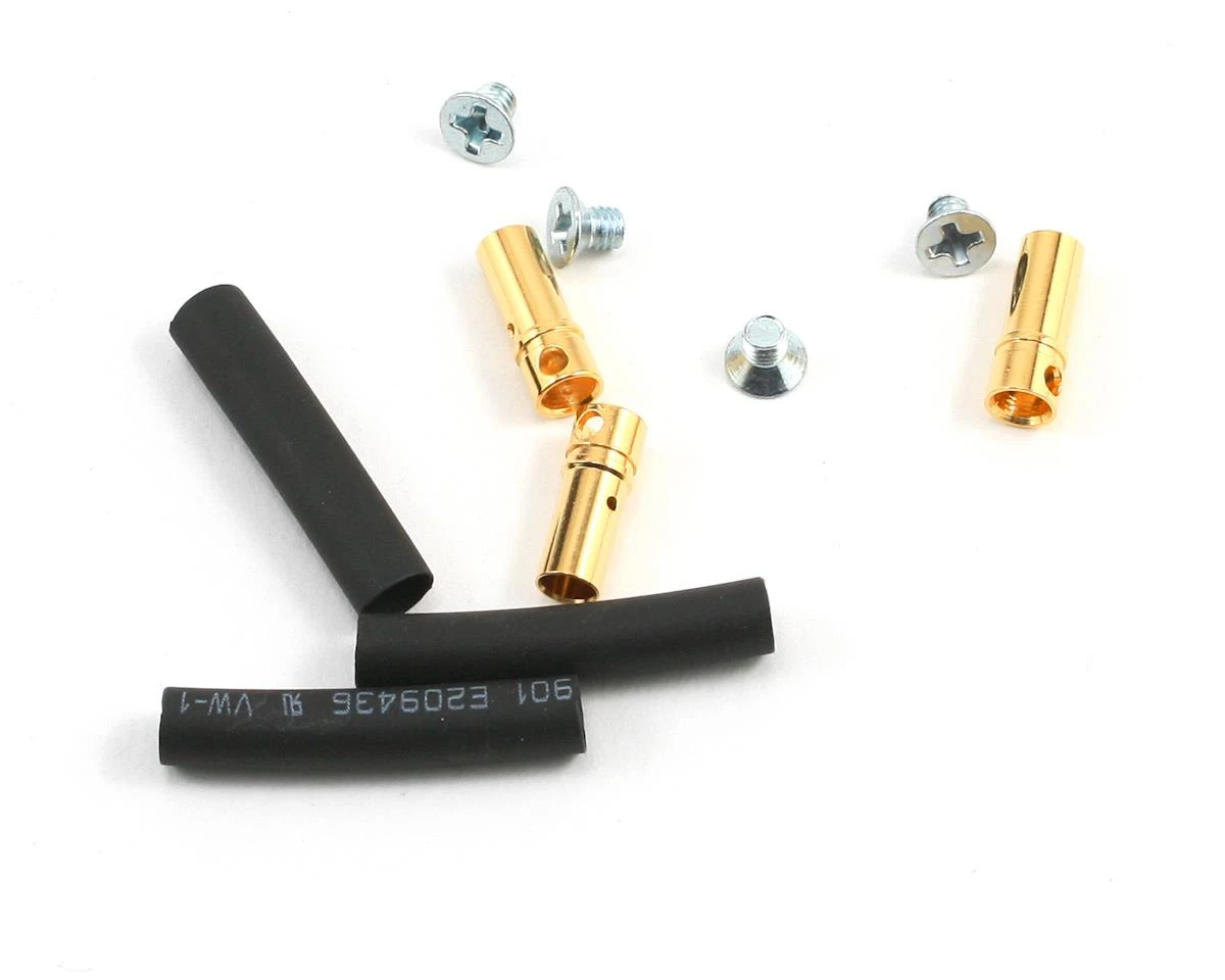 All Scorpion HK Series 22mm motors come with 3.5mm male Bullet style connectors already attached, and include a hardware package that contains 3 matching female Bullet connectors for your speed controller and a cross style backplate mount with 4 screws. Since the HK series motors are primarily designed for Helicopter and Ducted Fan use, they do not include a prop adapter. If you intend on running a prop on this motor, you will need to purchase a prop adapter for a 3.175mm shaft (1/8 inch).