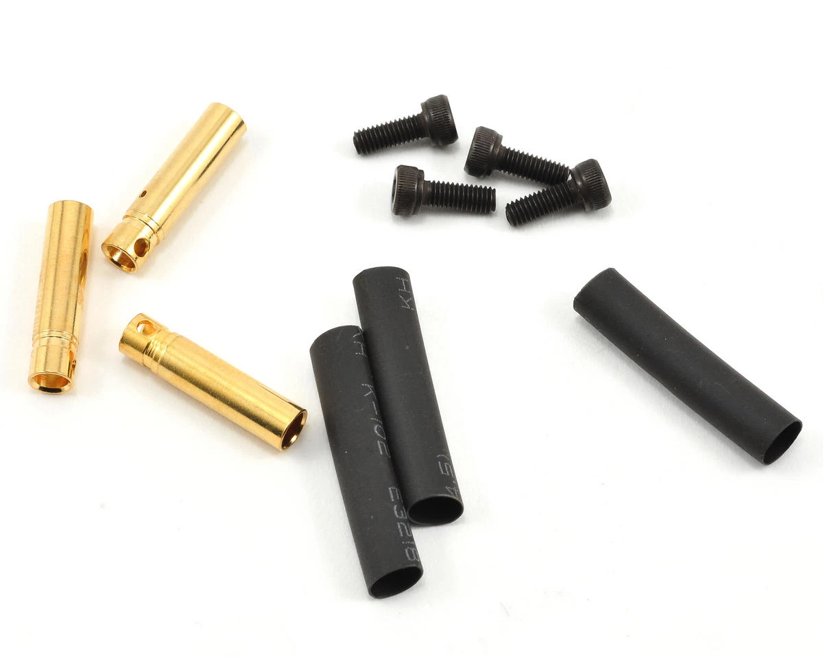 All Scorpion HK-3226 series motors come with 4mm male Bullet style connectors already attached, and include a hardware package that contains 3 matching female Bullet connectors for your speed controller with matching heat shrink tubing. Since the HK series motors are primarily designed for Helicopter and Ducted Fan use, they do not include a prop adapter. If you intend on running a prop on this motor, you will need to purchase a prop adapter for a 5mm shaft.