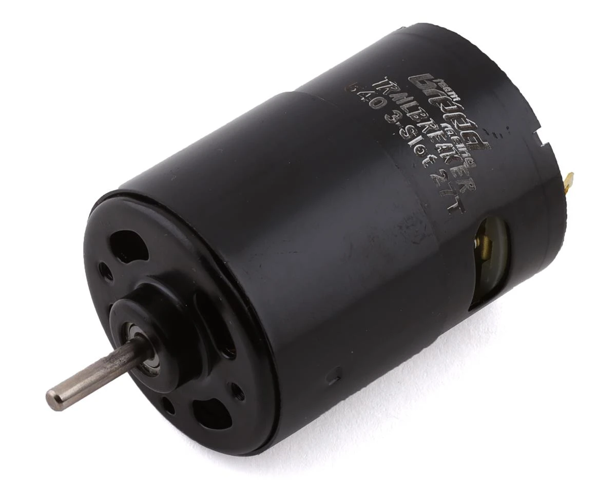The Team Brood Trailbreaker 540 27 Turn is built to provide excellent performance at a budget friendly price. The Trailbreaker 540 features a 3-Slot armature for the perfect balance of RPM, torque and smooth startup. The 540 size can allows easy installation in a wide variety of trucks, while still providing excellent torque, braking and horsepower. Optimal wire sizes to go with the most popular winds help create excellent power, wheel speed and torque. The Trailbreakers are built with the best parts available, so they will perform under extreme conditions and environments, with less risk of failure like a typical sealed can motor.