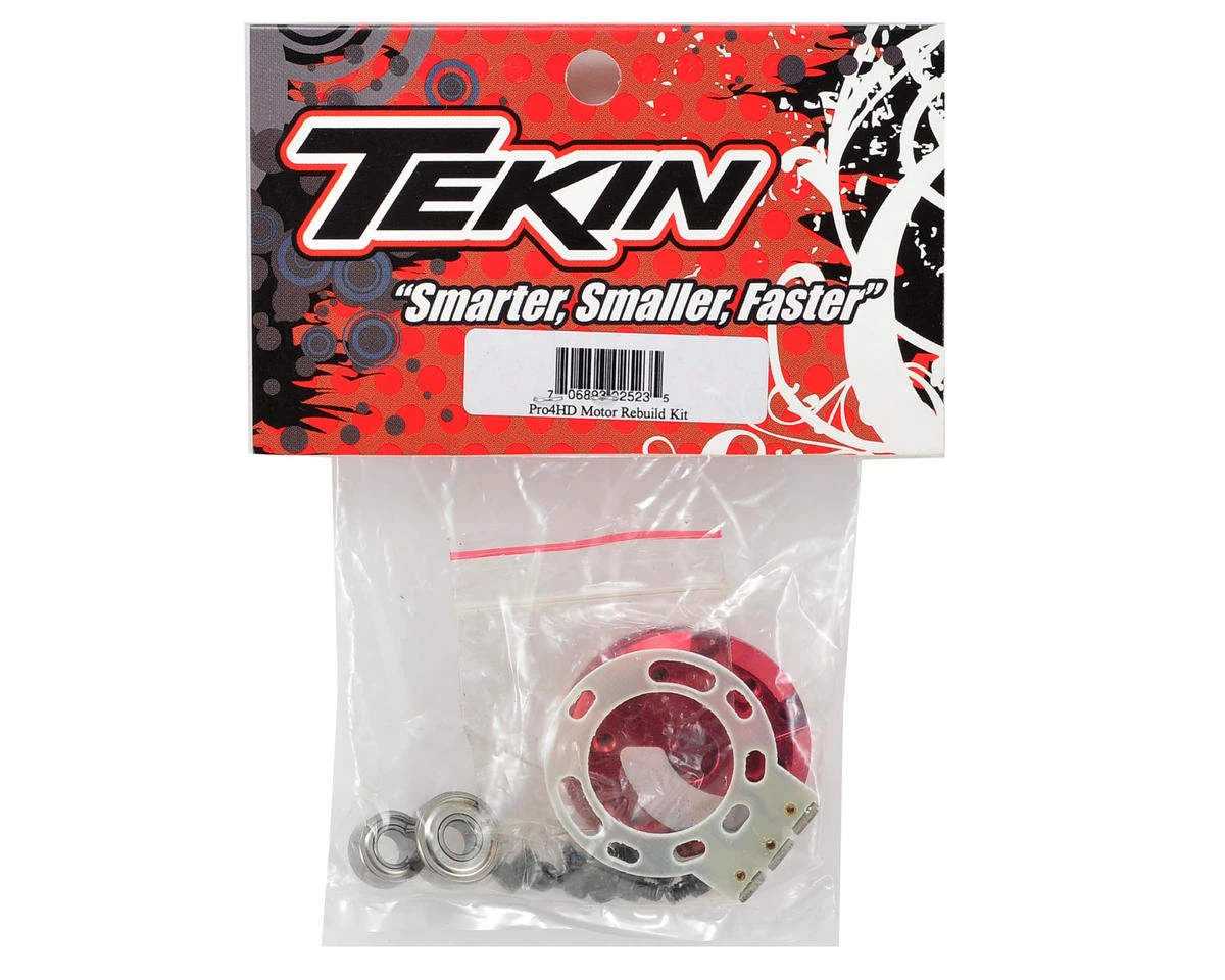 This is a replacement Tekin Pro4 HD Motor Rebuild Kit. Package includes a front end bell, rear cap, front and rear bearings, solder tab, isolator and replacement hardware.