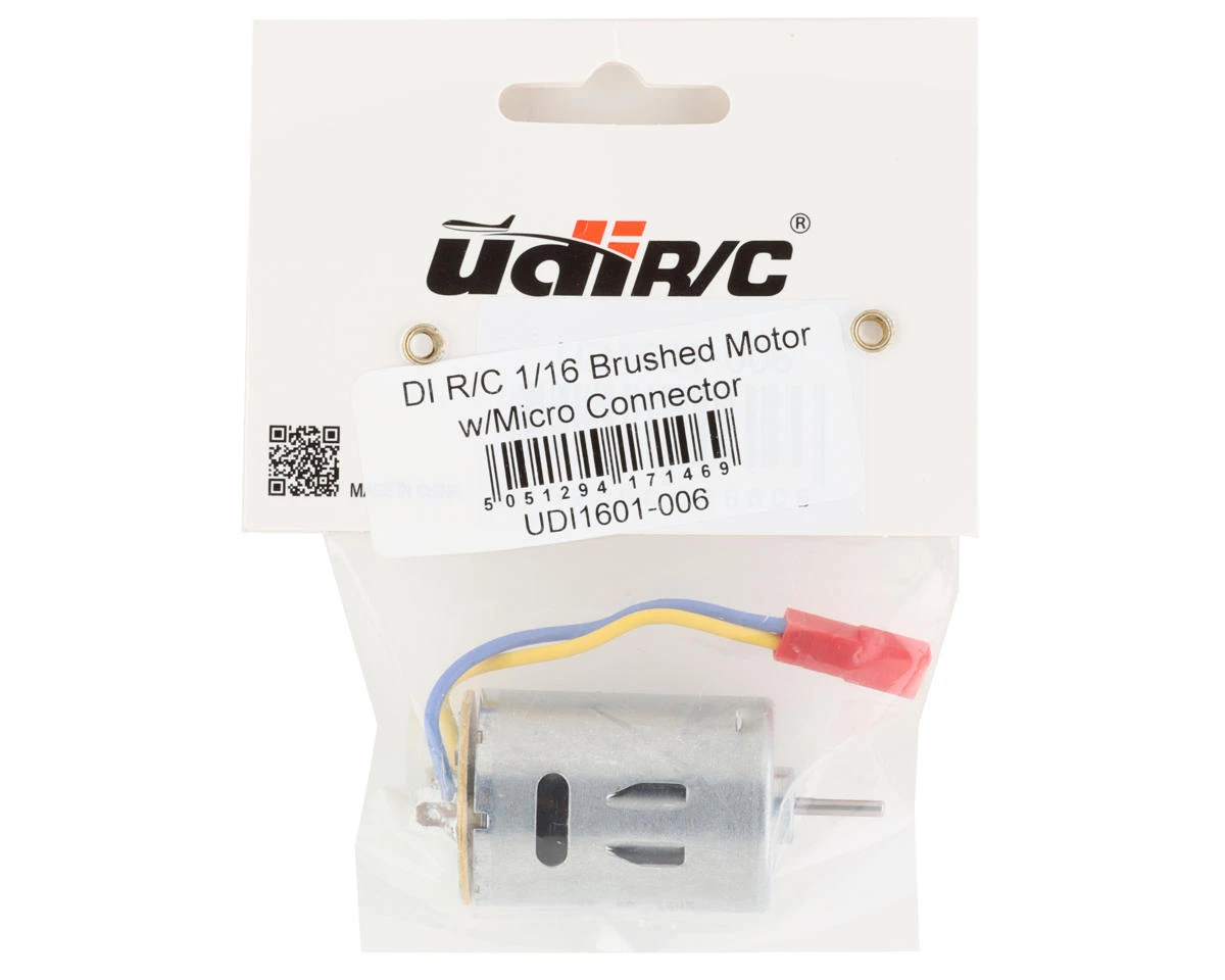UDI R/C 1/16 Brushed Motor with Micro Connector. This replacement motor is intended for the UDI R/C Amphicyon, Breaker, Coleoptera, Hatchback Rally, Lancia Rally or Panther. Package includes one pre-wired motor.