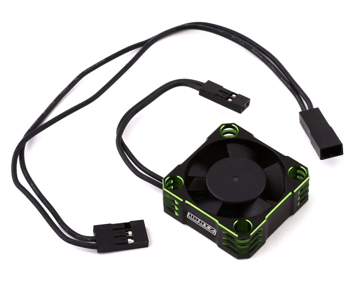 The Whitz Racing Products Green 30mm HyperCool Aluminum Cooling Fan helps lower a motor’s operating temperature. A cooler running temp improves the motor’s power output, keeping speeds consistent on longer runs as well as extending the life of your motor. Included is a 200mm extension wire to run the length of your vehicle to connect the fan to your receiver no matter where the fan is positioned.